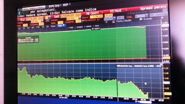 © Ansa. (ANSA) - ROMA, 1 DIC - Lo spread tra Btp e Bund tedesco a dieci anni chiude in lieve rialzo a 140 punti base (143 ieri) con un rendimento all'1,71%.