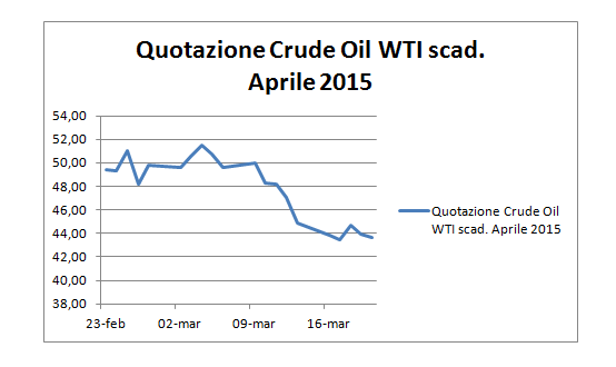 Quotazione odierna del Crude Oil WTI scad. aprile 2015 delle ore 11,30