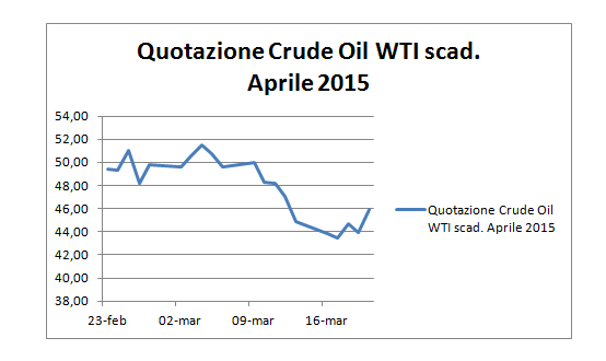 Quotazione odierna del Crude Oil WTI scad. aprile 2015 delle ore 16,50